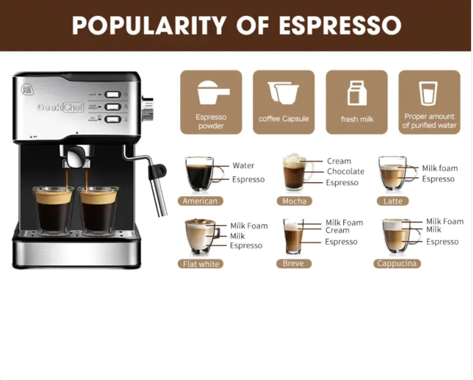 Elevate your at-home coffee experience with this compact, high-performance semi-automatic steam wand milk frother. Designed for small spaces and home offices, it provides the perfect balance of convenience, efficiency, and quality, delivering barista-level foam with ease.