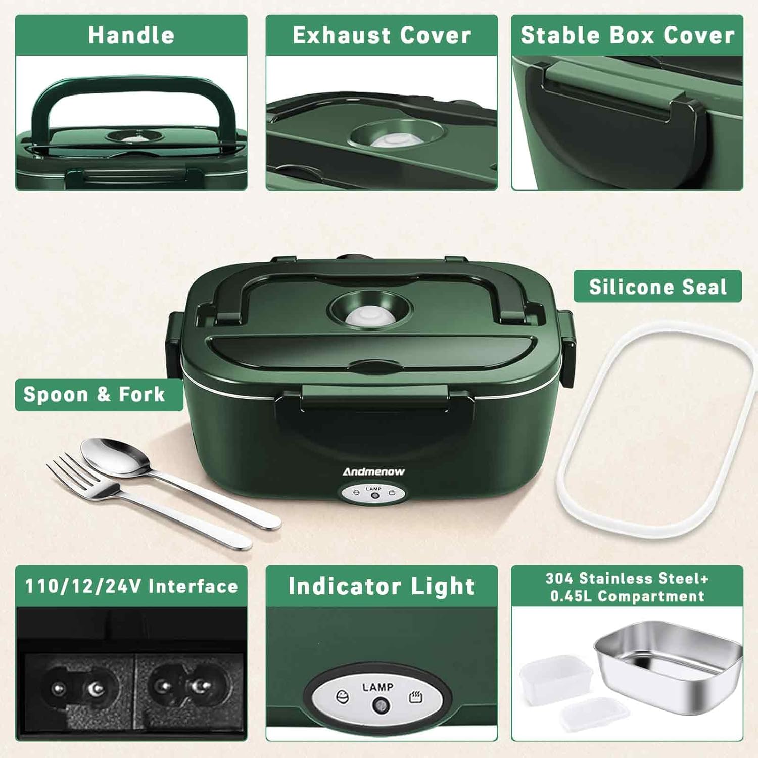 - 🥄【 Premium 304 Stainless Steel Inner Pot】Durable, non-toxic, and built to last. The food-grade stainless steel container resists odors, stains, and corrosion — no plastic aftertaste, no warping. Keeps your food fresh and safe with excellent heat retention.