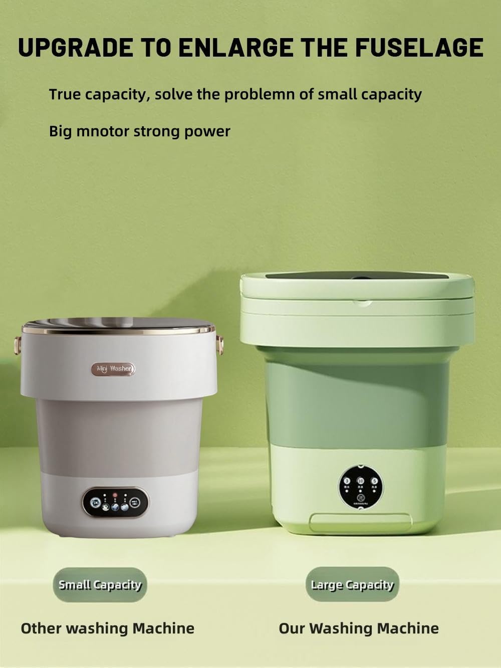 Portable Washing Machine, Mini Washer,16L Upgraded Large Capacity Foldable Washer.Deep Cleaning of Underwear, Baby Clothes and Other Small Clothes.Suitable for Apartments, Dormitories, Hotels.(Green)